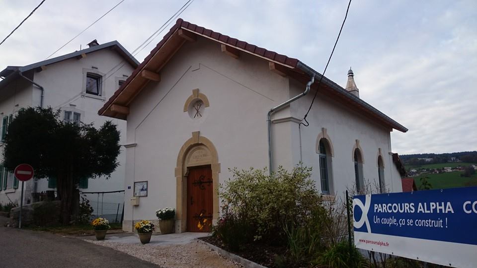 Magnifique petit temple historique à Villers-le-Lac. Eglise jeune et vivante à l'intérieur. Cultes tous les 15 jours sur place, tous les 15 jours dans les différents domiciles des responsables de la paroisse